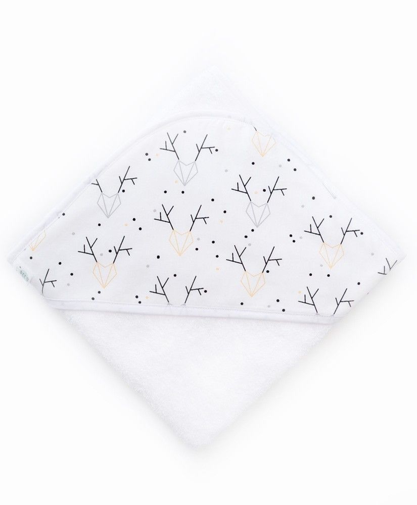 Cape de bain Taïga rennes unisexe, aux couleurs noir, blanc et gris avec des touches de doré métallisé
