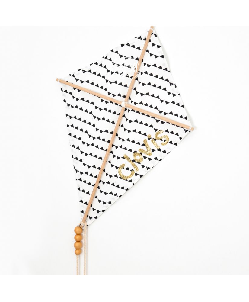 Cerf-volant décoratif Imagine unisexe black & white (blanc avec petits triangles noirs et touches de doré)