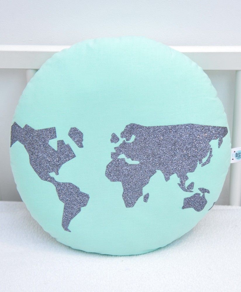 - coton vert d'eau uni avec mappemonde gris anthracite pailletée