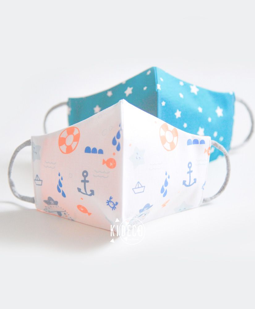 - Coton blanc avec ancre, poisson, bouée, pirate et bateau