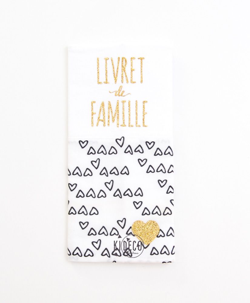 Protège livret de famille Oriane 2 black & white (blanc avec petits coeurs noirs et touches de doré)